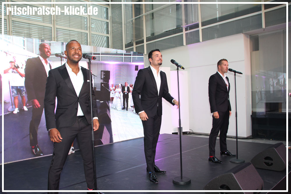 Von vielen sehnlichst erwartet: Die dreiköpfige Swing-Formation „Vintage Vegas“ mit Inan Lima (links) und Tom Marks (rechts) sowie dem ehemaligen Bro’Sis-Sänger Giovanni Zarella (mitte).Im Rahmenprogramm gab es unter anderem eine eindrucksvolle Tanzvorführung.