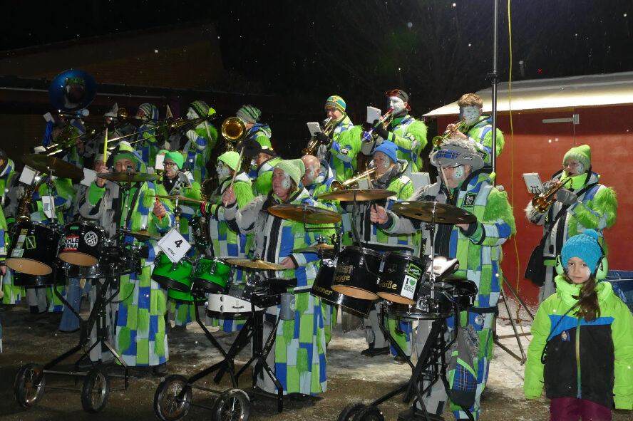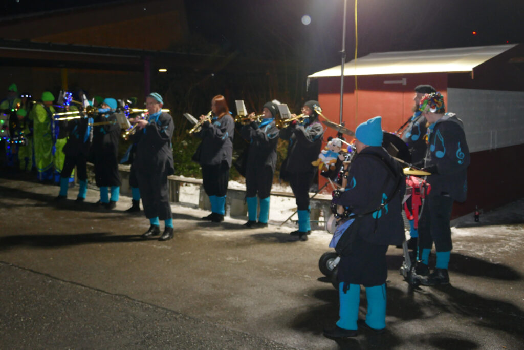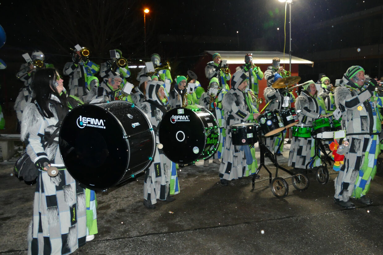Die Kieselbronner Guggegaiße, die Bääreglopfa aus Dietenhausen und die Ittersbacher Gugguggsgugge sorgten zusammen mit der Guggemusik „Die Laddler“ aus Jöhlingen und DJ Andy für gute Stimmung.