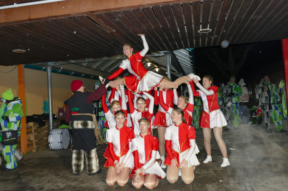 Das fast dreistündige Programm begann um 17:17 Uhr mit dem Einzug des Schalmeienzug Leonberg und gleich zu Beginn durften sich Nadine und Nadine ihr neues Häs‘ überstreifen. Tänzerisch wurde die Veranstaltung unterstützt vom Tanzmariechen, der großen Garde sowie der Showtanzgruppe „Happy Feet“ der Faschingsgesellschaft „Die Klemmer“ aus Gräfenhausen.